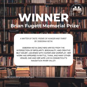 This year, “A Matter of Taste: Poems of Hunger and Thirst” by Deborah Ketai was chosen as the winning manuscript. This will be Deborah’s first ever published collection at the age of 72. Thank you again to all the entrants for participating this year. Deborah Ketai (she/her) writes from the intersection of bipolarity, bisexuality, and …